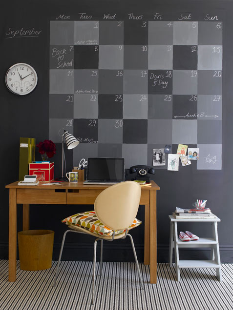 Look at the brilliant use for chalkboard paint that Ivillage featured!! If you have a specific space JUST for office, I love this idea!! Don’t forget a cute stool to get up to those first few days of the month!!