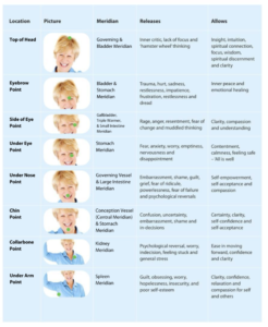 We then move into the most pressing issue or MPI. Tapping on each point using the emotion or pain you filled the blank above with.