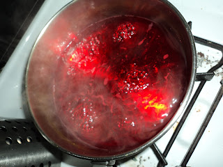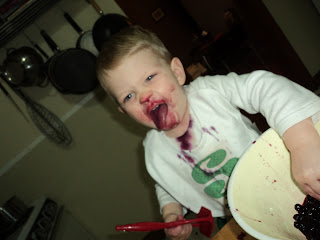 I had “L” help me smash up the Blueberries before we boiled them, it wasn’t necessary, but I knew he would love doing it, and I knew I could get some super cute pics of him for his scrap book!