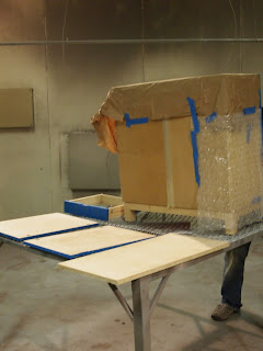 I had begun the first pieces, when the wind picked up to 40 mph, and then, the rain came, and came…and came…Fast forward to this past weekend. Thank GOD my husband works for a high end street rod shop, We took all the pieces to their blasting booth. I know this is cheating..when you think of DIY, you don’t think of street rod blasting booths to paint your pieces in. But we did it, and it turned out great!