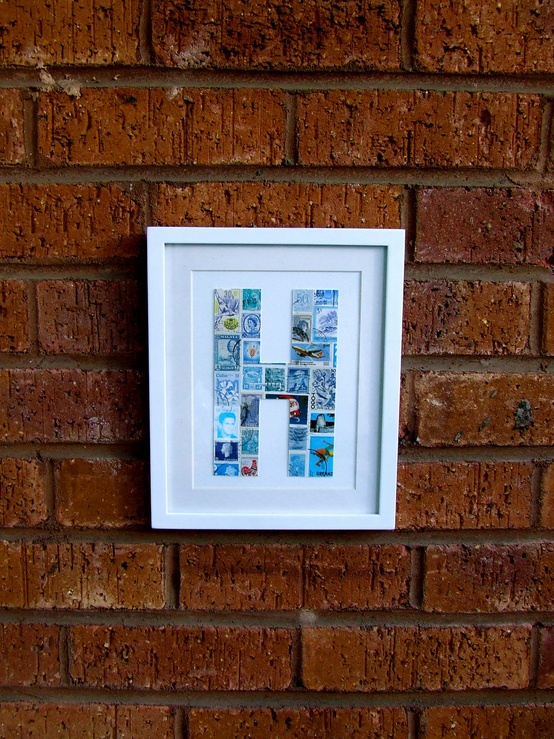 When I saw the above picture on Pinterest, the wheels started turning. I wasn’t quite sure how to make a clean cut letter like this, ya know how sometimes you see something and know you can do it it’s just a matter of time before you figure out how to go about it? Well this has taken about six months :/ In the meantime I made a monochromatic collage for my living room to satisfy my need to so SOMETHING with these stamps.