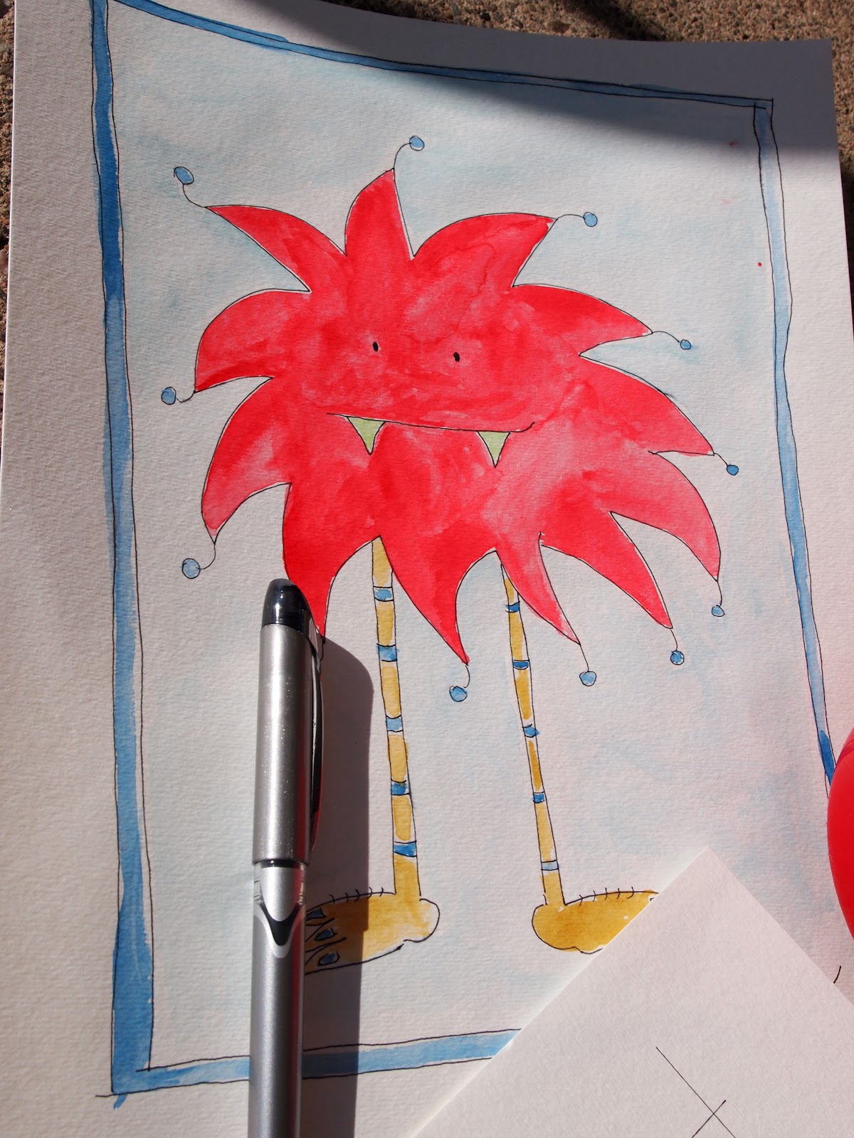 SO something completely crazy happened last week. My friend Elena, started a wonderful new website called, “Noodles on The Wall“.(that’s not the crazy part..that is actually BRILLIANT) The idea?…a place where creative women can “Throw Their Noodles “( Ideas) and see if they stick. We all have so many things we want to do, and a lot of times, great ,creative ideas slip by us because we are too afraid to dive in..with thoughts of “what if I invest time, money, whatever, and it fails” well…Elena has created a space for you to try it…throw your idea up there!! People can comment, let you know what they think..its a great website, and I know it will be a success!! You have probably figured out where this is going…After Elena launched her site…I wanted to support her, I searched through my mind of ALL the ideas that have floated past me, and haven’t stuck, but still keep making their way back to my thoughts…nothing appeared. I went to sleep, and had a crazy dream about mini art..you know, like shrinking your kids artwork and framing them all together? well that dream, turned into a journal writing the next morning, which transformed into hand drawing, and water coloring, little pictures. I saw it exactly how I wanted it…a sea of 3″x5″ ( or something) cards, that people could select, and I would create framed art for them.. with drawings that told a story for their lives. The “noodle” that has been re-occurring over and over prior to this dream, was the thought of hand made note cards..I use to do it A long time ago, and have started missing it a little…but I kept saying things like, I have no time for anything right now, let a lone adding another project..so there it sat.. I should back up a minute..Since I was a little girl, I have covered my diaries and journals with little pen drawings, little characters, little suns and flowers, all images that make me happy. When I was little, my mom and I would sit at our old wooden farm table with big roll sheets of manila paper, and we would create scenes…she would always let me pick..should we do an amusement park? an under water scene? a circus? We would then take turns adding to the scene, I would draw an Octopus, she would draw the sand. I would draw a roller coaster, she would draw the big tent. Its a part of my past that brings me joy, and now..I am bringing it into my adult life…