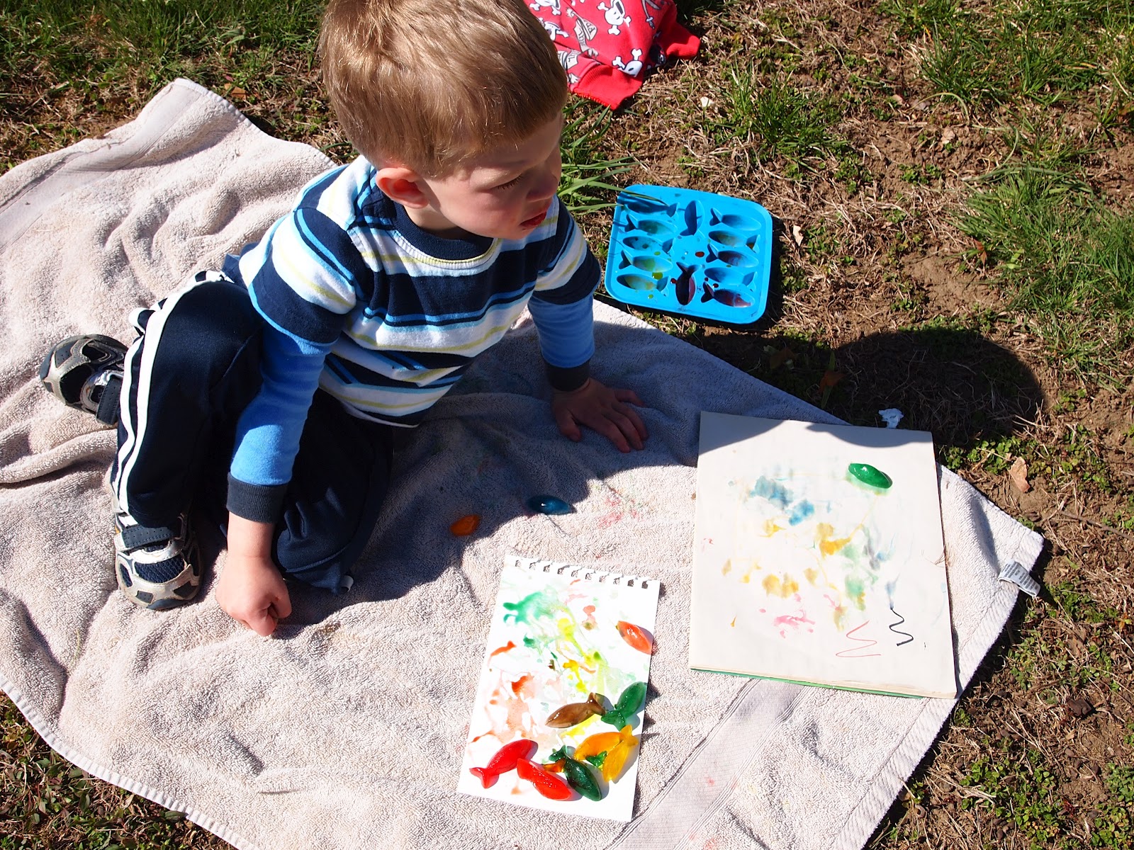 Liam LOVED watching the fishies melt in the sun, and when he found out he could eat them,he was so excited!