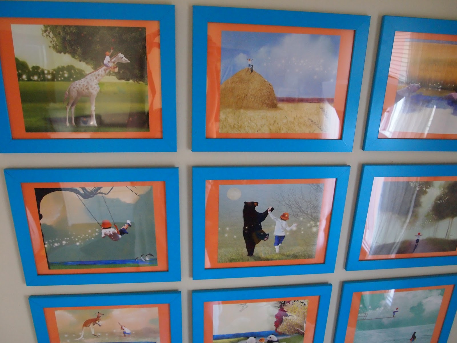 Okay, so if you are a brand new mama, your new babe doesn’t quite have a fav. book yet, but you probably do!! Buy an extra, or use an extra that you have gotten from your shower(s) ( I think we got 3 “Guess How Much I love You” books!!) This is a project I just recently did actually, because we are in the process of turning Liams nursery, into a big boy bedroom ( again, throat tightening, and possibly a tear forming) The book I chose was one that he has always loved, called “Wherever you are, my love will find you” by Nancy Tillman. SO, at Christmas, when I saw it for $5 at Kohls!! are you kidding!! $5!! I bought another, knowing I would cut it up. It may take you a moment to get past the fact that you are about to ( GASP!!) cut the pages of a book!! Isn’t that illegal or something? haha..I assure you , it isnt. And for me, it only took about 2 seconds, to remember that Liam LOVES this book, and I LOVE the illustrations, so what better, then to surround him with things he loves!!