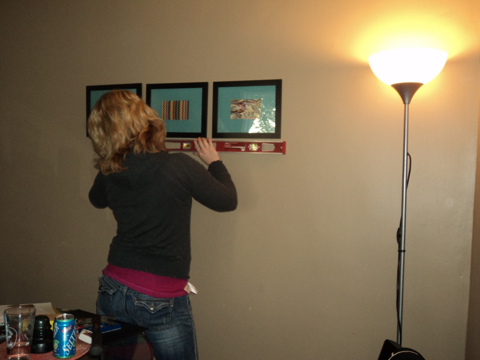 Here is a dramatization of me leveling the pictures to make sure they were hanging straight…I mean, I actually DID do this, but this specific picture, was me looking like I was hard at work…why am I telling you…I don’t know, maybe because I think its hilarious that G could have just taken an actual picture of me doing this step, but instead I posed for it..hahaa..I’m actually laughing as I write this..