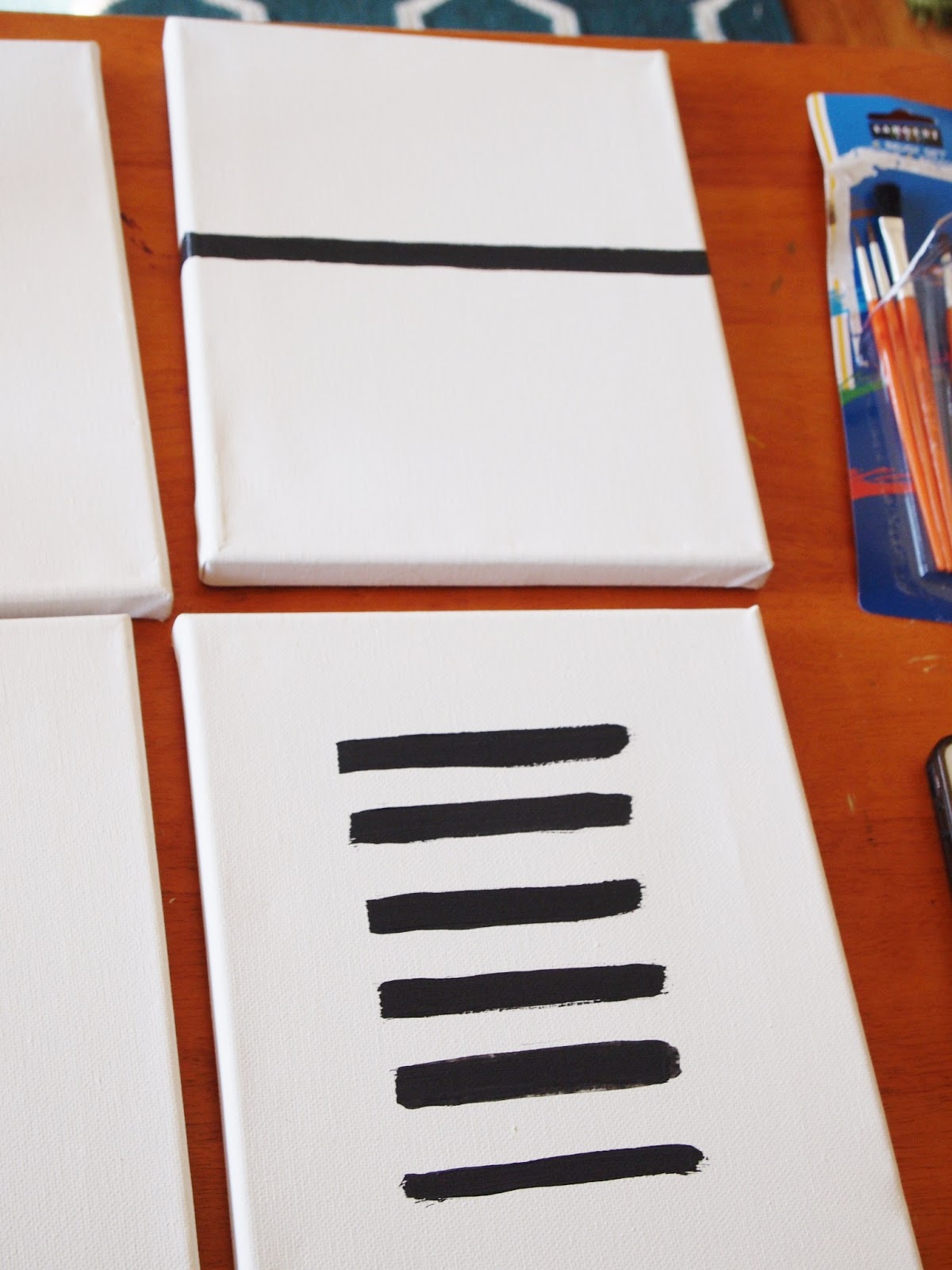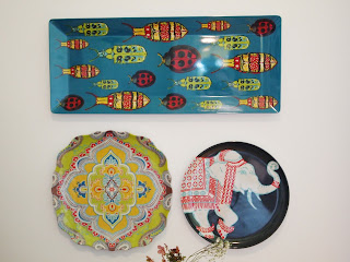 SO, per usual, I pulled out a few canvasses and began to paint! (4) DIY paintings later, VOILA..complete!! also check out the sweet pillow from Target, and the melamine plates I scored on Clearance from World Market!!
