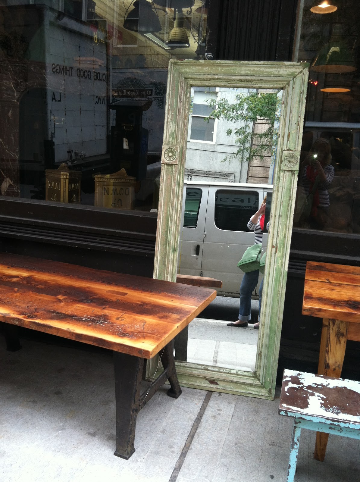 A few weeks ago, I had the day off, and decided to take a trip into the city to hit a few places that I have been dying to check out ( yes we have lived here for 8 yrs, but NYC is abundant….lots to see)! it turned out to be a beautiful day, walking the city, bouncing into a cafe to enjoy an espresso while watching the hustle and bustle of Gramercy Park, then onto Chelsea to stop into Olde Good things. This is THE MOST AMAZING vintage reclaimed, recycled, re-everythinged store you will EVER see in your lifetime ( dramatic I know, but “blown away” doesn’t even describe) For years, my other designer friends have told me, begged me practically, to check it out…and I cant believe I am just getting around to it..anyway..I’m about to share with you a ton of pictures and what may be some of the most awkward self video ever taken. I am almost too embarrassed , BUT I’m going to anyway. I mostly took these videos to show my family what its like in the city, and a few of my favorite spots in case we ever move ;)…So here goes..My walk through NYC