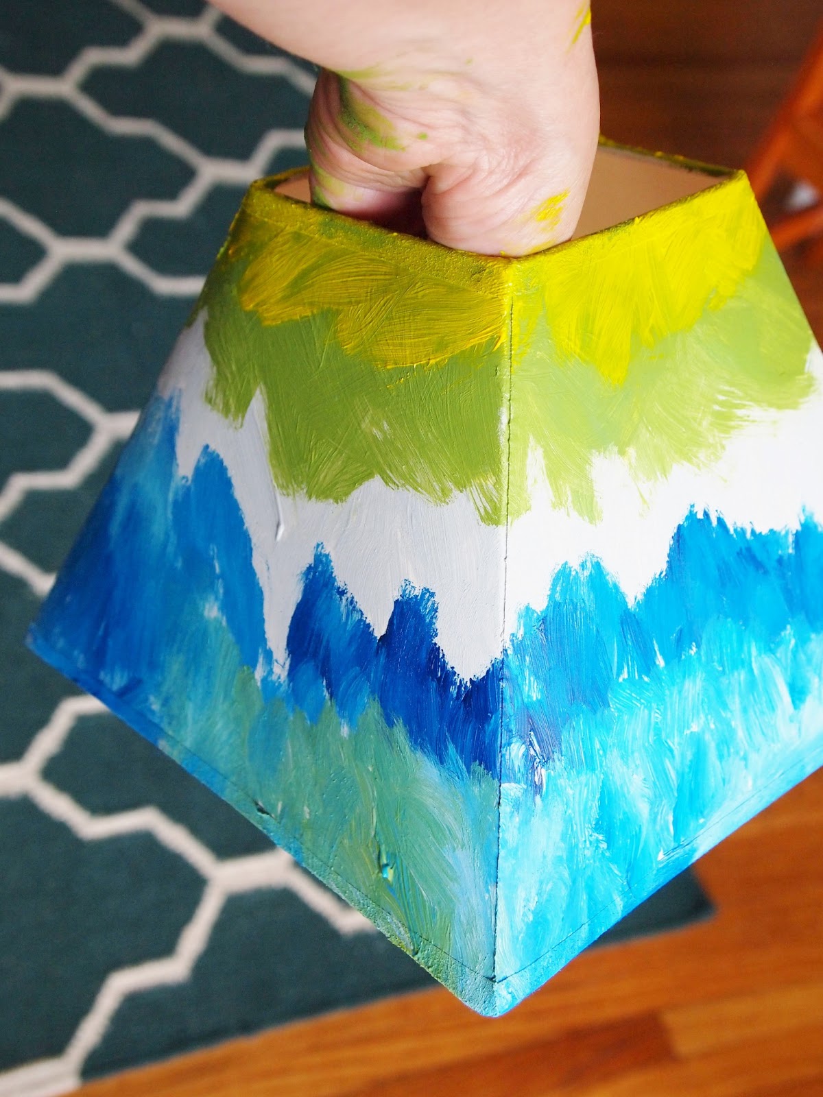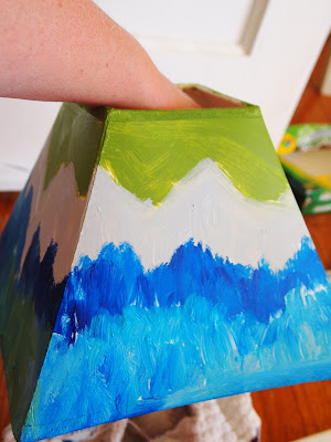 I had an old target lamp with a plain vanilla lamp shade, and on a whim today, I decided to try my hand at Painterly. Why not… I figured it would either turn out and I would have some color, OR it would Suck and I would have to buy another $5 lamp shade…I was willing to take a small risk ;)! I got out the paints and started at it. The whole point of “Painterly” is to be able to SEE the brush strokes…Take a look at how this project went from a messy MESS to a lamp I am kind of Digging!