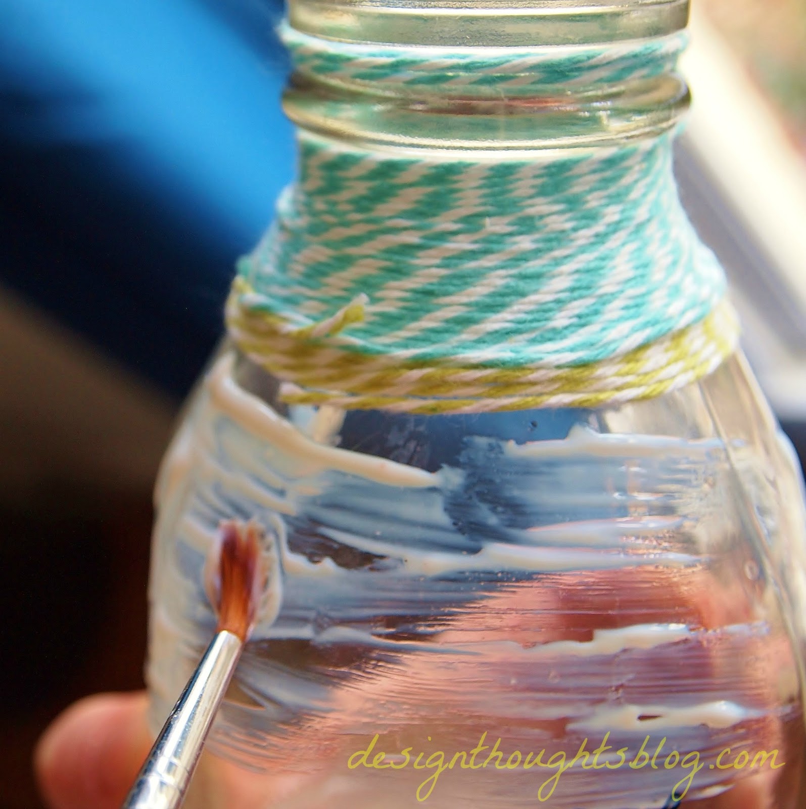 I started by wrapping the first part of the milk bottle with out glue..but soon found out, you need glue to hold in place, so step one, is paint first section with glue.