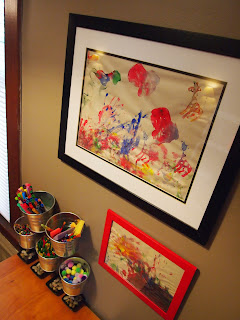 Added one more piece of hand made art work! I love this so much. This is the least expensive way to brighten up any children’s area!G is the one who brilliantly thought to hang the bigger one ( I did a post about that here) and so I added this Red Ikea Frame ( $1.99) and a smaller piece to even out that little space.