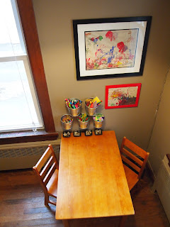 I finally have a little project to share with you! Yay! I have been doing just a few small things around our home, to create an environment to help Liam feel a little more independent now that he is almost 3 ( a longer mommy post on that transition later). One of the things that Liam loves to do is art, but all of the art supplies have been safely tucked away out of the reach of new walking baby/toddler, then out the reach of newly curious 2 yr old…It occurred to me, my toddler, is almost 3, and we have been struggling. He needs more independence. The first thing I decided to do, is make his simple art table, into an actual art “center”.