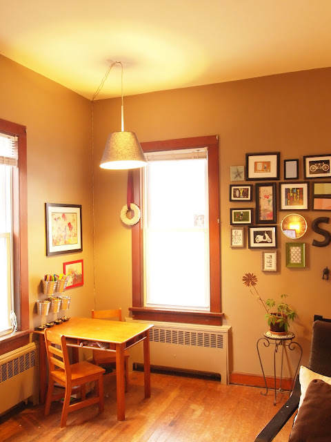 Switched location! Moved his table and chairs from the boring south,door wall, to the East wall. This gives him more natural light to “create” 😉
