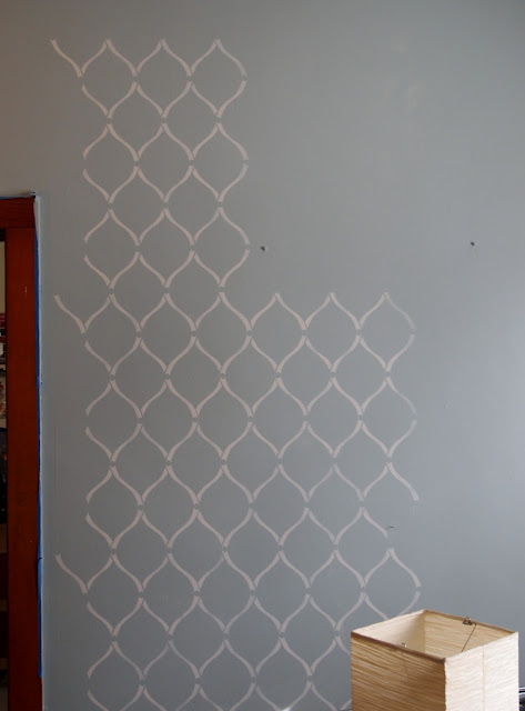 So you all know the story, of how Cutting Edge Stencils contacted me waaaayyy back in November? Well, my scale has finally tipped on the side of “balance” ( briefly) and I cant even describe how excited I am to finally get started ( err..RE-started) on this fun project. We are re-doing our “office/playroom/dining area, and I couldn’t even start it until I dove head first into stenciling the wall.