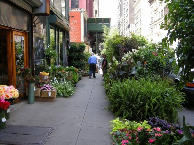 “In the flower district where the potted plants are put out to sunbathe, the streets are transformed into a landscape somewhere between that of an exotic marketplace and a surreal painting”.