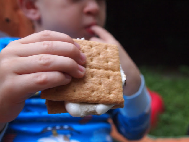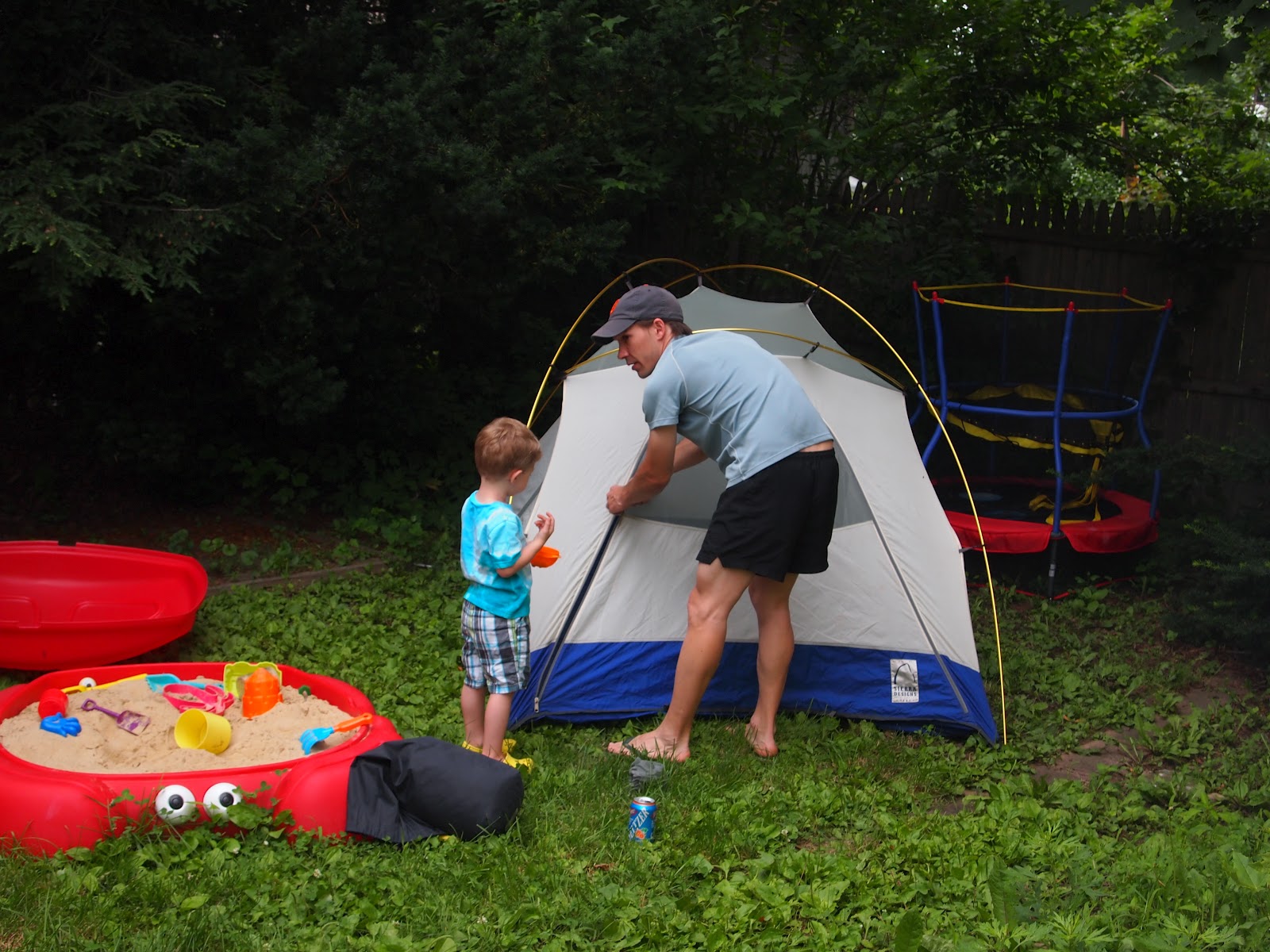 As the night approached, I am not entirely sure who was more excited, Liam, who was doing tumbles in the tent, or Grant who woke up that morning, saying “tonight is the night!!” Grant made this such a special experience for Liam. He had him help “gather wood” ( Sticks) for the campfire, which by the way, G made out of an old cinder-block he found ( I Love that man!!) and pick the perfect spot to set everything up, he had Liam help set up the tent, and explained in a very serious Daddy tone, the importance of fire safety.
