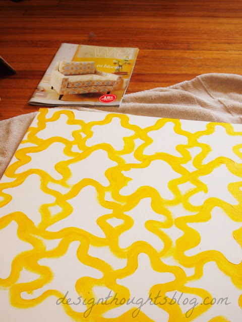 I have random canvas’s all over. (Read here about how painting to me, is like a one night stand.) I arranged a few different sizes on the bar, along with another original painting I did ( Let It Be) and a photo I took in New York. I decided on a bigger canvas to balance the scale. I grabbed one of my bigger ones, and my new West Elm catalog, and began painting!