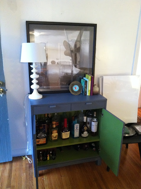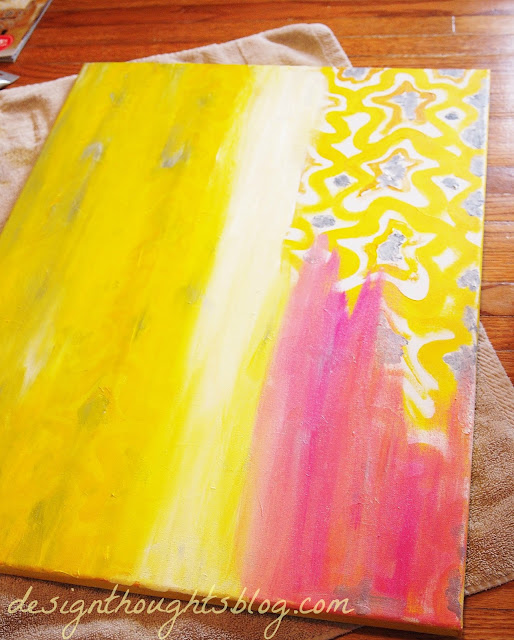 I have random canvas’s all over. (Read here about how painting to me, is like a one night stand.) I arranged a few different sizes on the bar, along with another original painting I did ( Let It Be) and a photo I took in New York. I decided on a bigger canvas to balance the scale. I grabbed one of my bigger ones, and my new West Elm catalog, and began painting!