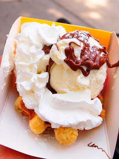 Now, lets talk about the dumplings, dumpling. Holy S!! for fellow NY’ers..you may know of a famous little food truck called Rickshaw Dumpling Bar ?? I thought so..are they not to DIE FOR?!! as soon as G and I saw the cart ( yes, the cart outside of the free food free drink VIP tent) we knew we had to scarf a few!! OH MY GOSH! they were amazing!! We talked about those effing dumplings until we were lying in bed drifting off to sleep. The last thing we said Sunday night was, I love you, I love you too, man those effing Dumplings were the shit! I’m not kidding… then, we moved on to the waffle cart, you know the one right? the one where they have homemade waffles with a ridiculous amount of Ice cream, Nutella and strawberries.? Then we let Liam have a waffle cone later that day. We won Parents of the year after that.